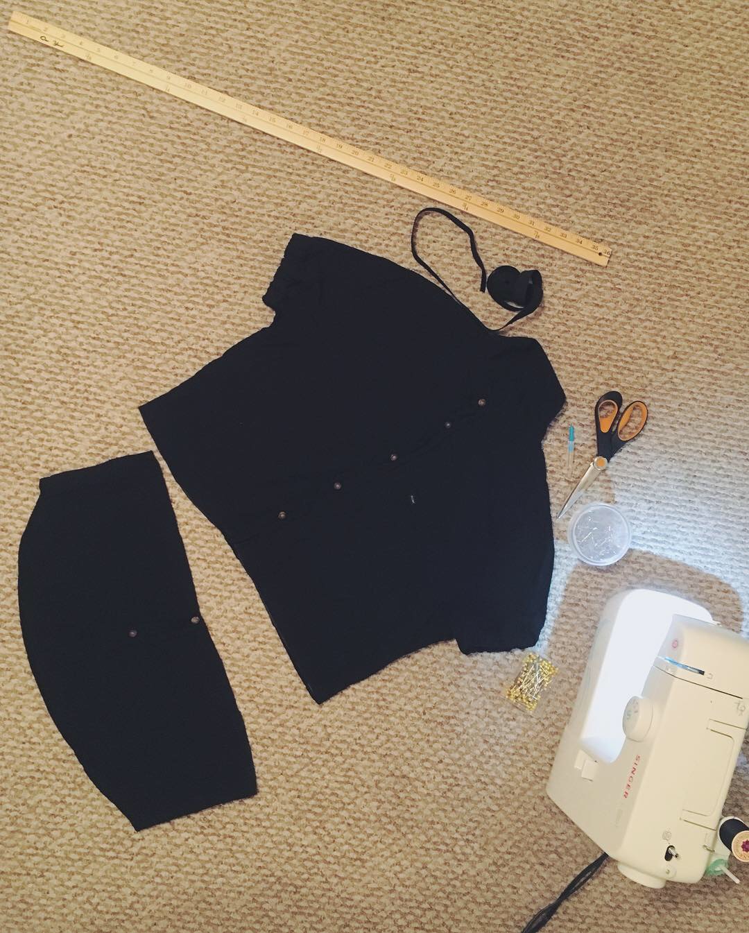 - With the sleeves I didn't cut them at all but I did add elastic banding to them! Similar to the bottom, hem with enough room for the elastic, and again DON'T completely close off the hem just yet. Measure how much elastic you need to wrap around your arms, AGAIN MAKE SURE TO LEAVE A LITTLE EXTRA ELASTIC. Cannot stress this enough, and I'm telling you from my own mistake because I measured exactly what my arm width was initially and it ended up cutting off circulation to my arm lol. Needless to say I had to undo my stitching and cut another piece of elastic that was longer. Loop through and close off the hem and taaa daaaa! You are done :)