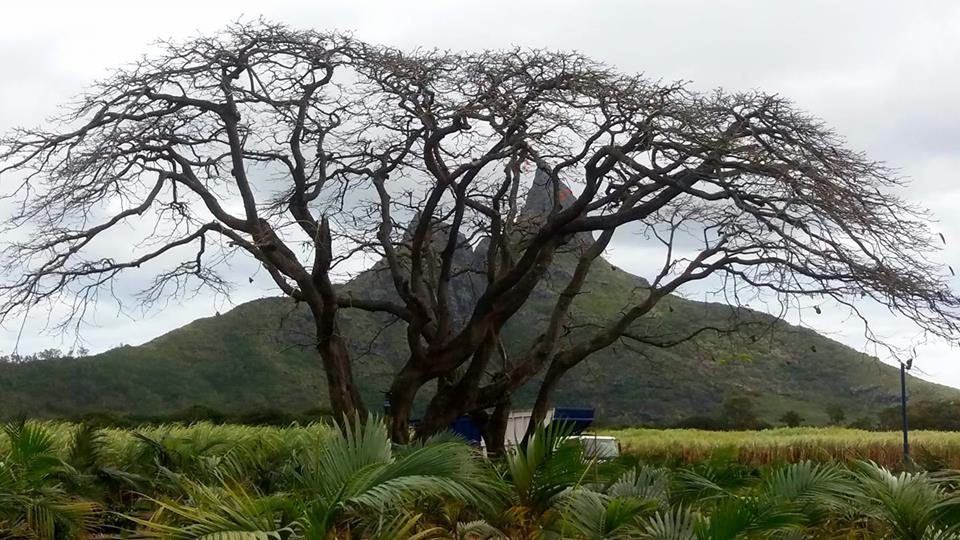 This is a picture of mountain Trois Mamelles, hidden partly behind this great flamboyant tree.