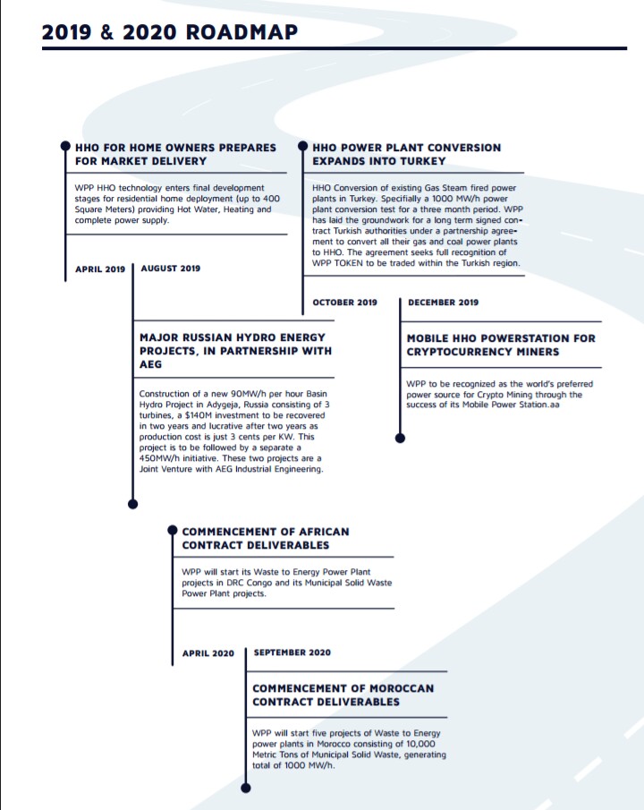 WPP ENERGY MOBILE POWER STATION. WPP has a solution under development that will produce 1 to 2.5MW of energy per hour. This stand-alone Power Station requires only a water line hook-up and can be delivered anywhere in the world . This product will demonstrate WPP's market leadership to help solve a massive energy crisis by using WPP’s existing proven technology to establish WPP as the world’s preferred power supply source for cryptocurrency miners, delivering a variety of clean and inexpensive power solutions to the doorstep of small, medium and large mining operations. Power demand projections from cryptocurrency mining will fuel exponential demand for WPP’s clean affordable energy solutions, reducing mining costs to a fraction of what they currently are now and with a zero-carbon footprint.