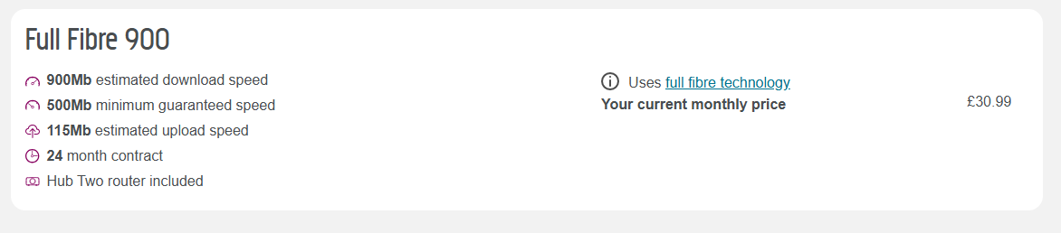 PlusNet (referral username: doctorlai) engineer came to upgrade fibre broadband yesterday, and I've now got max 900Mbps download and 150Mbps upload speed home. Nice!