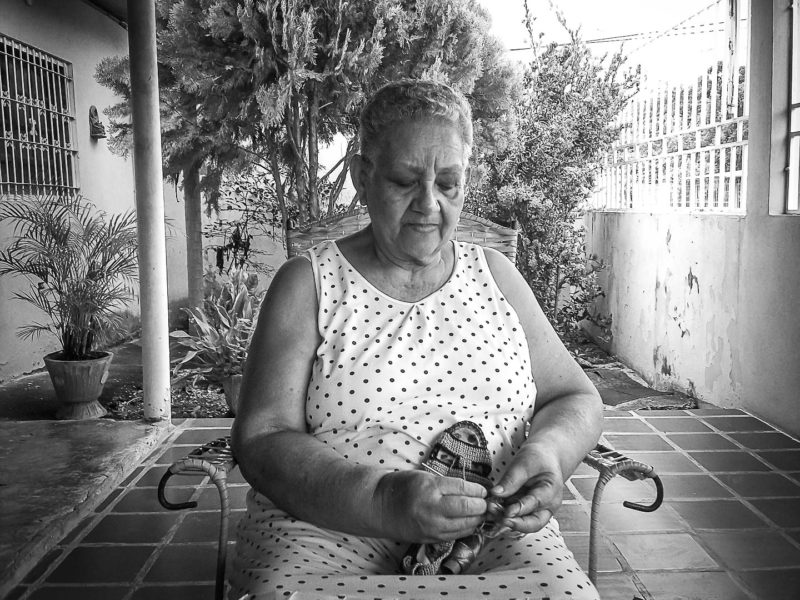 —Ya no puedo caminar como antes. Esas dolencias de las rodillas y de la columna no me dejan. Yo sufro de la cervical y tampoco puedo estar tejiendo. Salgo muy poco, a menos que sea para visitar a algún vecino enfermo o a cumplir en un velorio o una misa.