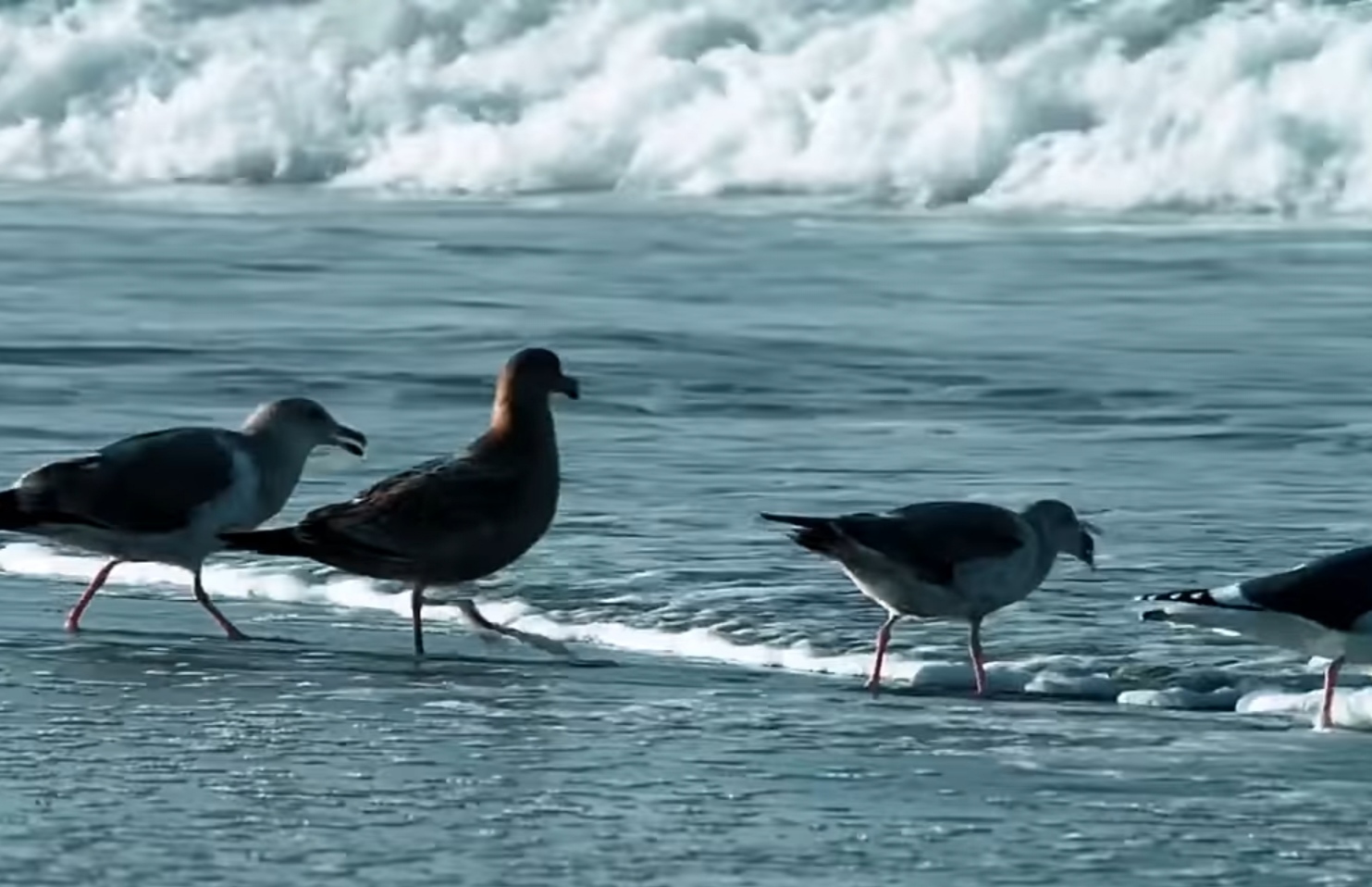 Tapi sial nya mereka bukan lah satu-satu nya makhluk di pantai ini yang mencari makan, bagi burung camar mereka adalah kudapan lezat yang sangat mudah di dapat, burung-burung ini dengan mudah memunguti mole crab dari pasir.