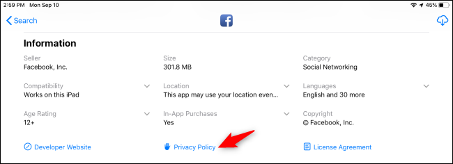 Apple is doing something related to the problem, though! As of October 3, 2018, all new apps uploaded to the store must have a visible privacy policy. New and updated apps on the store—in other words, not actually every app—will have a link on its app store page you can tap to view a privacy policy.