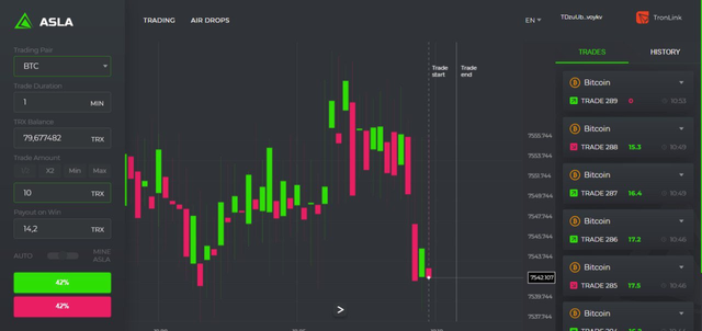 This function is understandable to professionals as well as beginners. First of all, this is transaction clear and unconditional data protection. One of the advantages of binary contracts is simplicity. All risks are known in advance. The outcome of the bet depends on the correctness of the forecast of changes in prices for the selected asset. Regardless of the outcome of your bet, in any case you will receive ASLA tokens, which after freezing will yield daily dividends in TRX tokens and an additional coin of the platform. ASLAgames platform.
