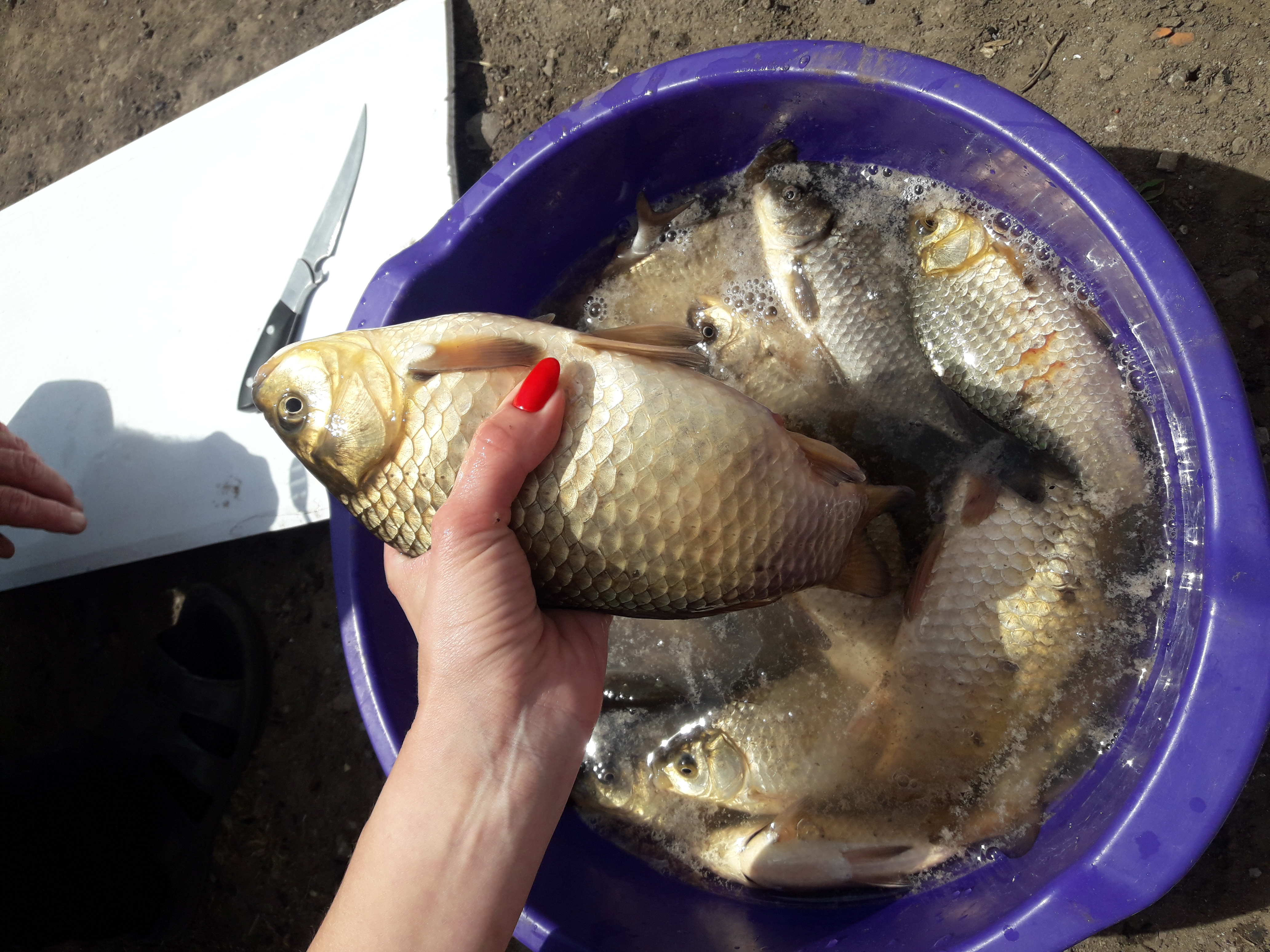 Мы отпустили Карпа маленьких и две черепахи)а вот карасей на сковородку)