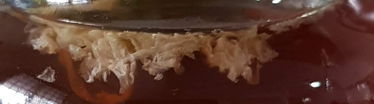 鸡精应该是透明的,但是, 他有一些白白的,长长的不知什么东西。