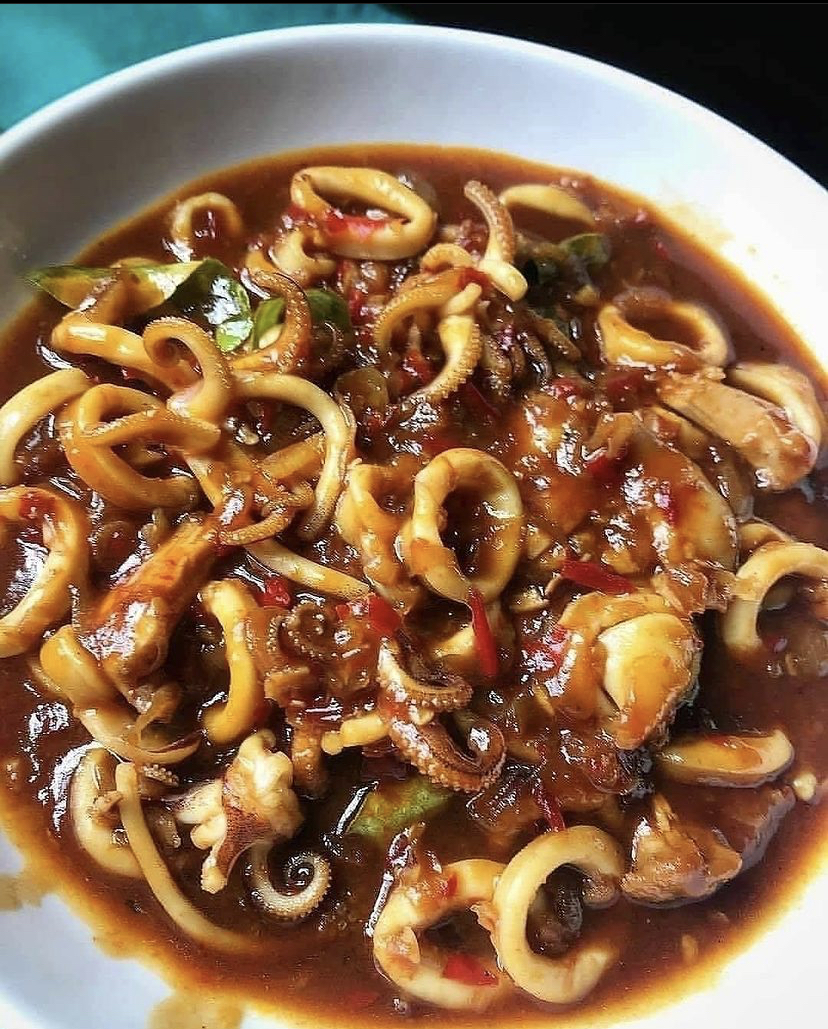 - Enter the squid, saute until the squid is cooked. Pour in the cornstarch solution. Stir until the sauce thickens. Serve .ā£