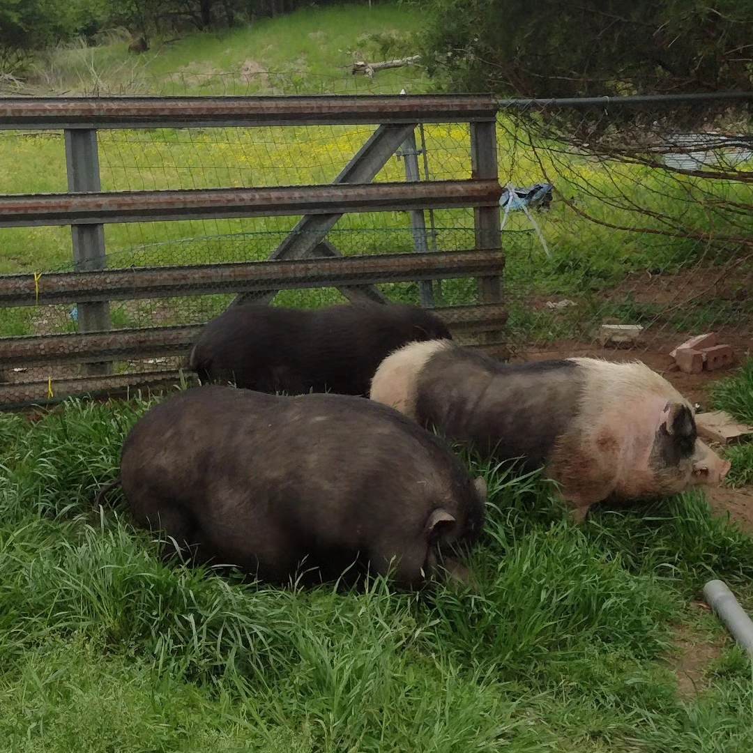 Now, about that farm. In 2021 we bought 4.5 blissful acres in the Ozark/ Boston mountains. It's been a lot of blood sweat and tears but we are slowly getting to be semi-self sufficient. We have a flock of chickens, geese and ducks, as well as 3 potbelly/ razorback cross pigs and one demanding Duroc Hampshire cross sow who drives me nuts.