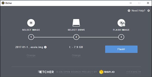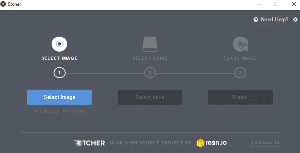 Now you will need to download & install the software that will write the image to the SD card. A good one to use is called Etcher, and it works on all platforms (Linux, Mac, and Windows). You’re able to download it from over at their website.