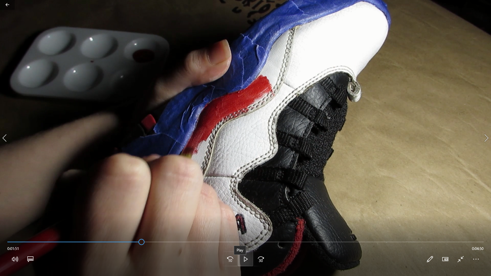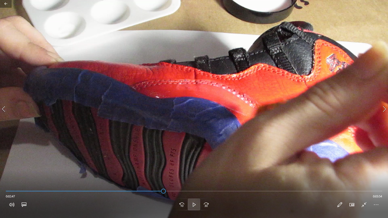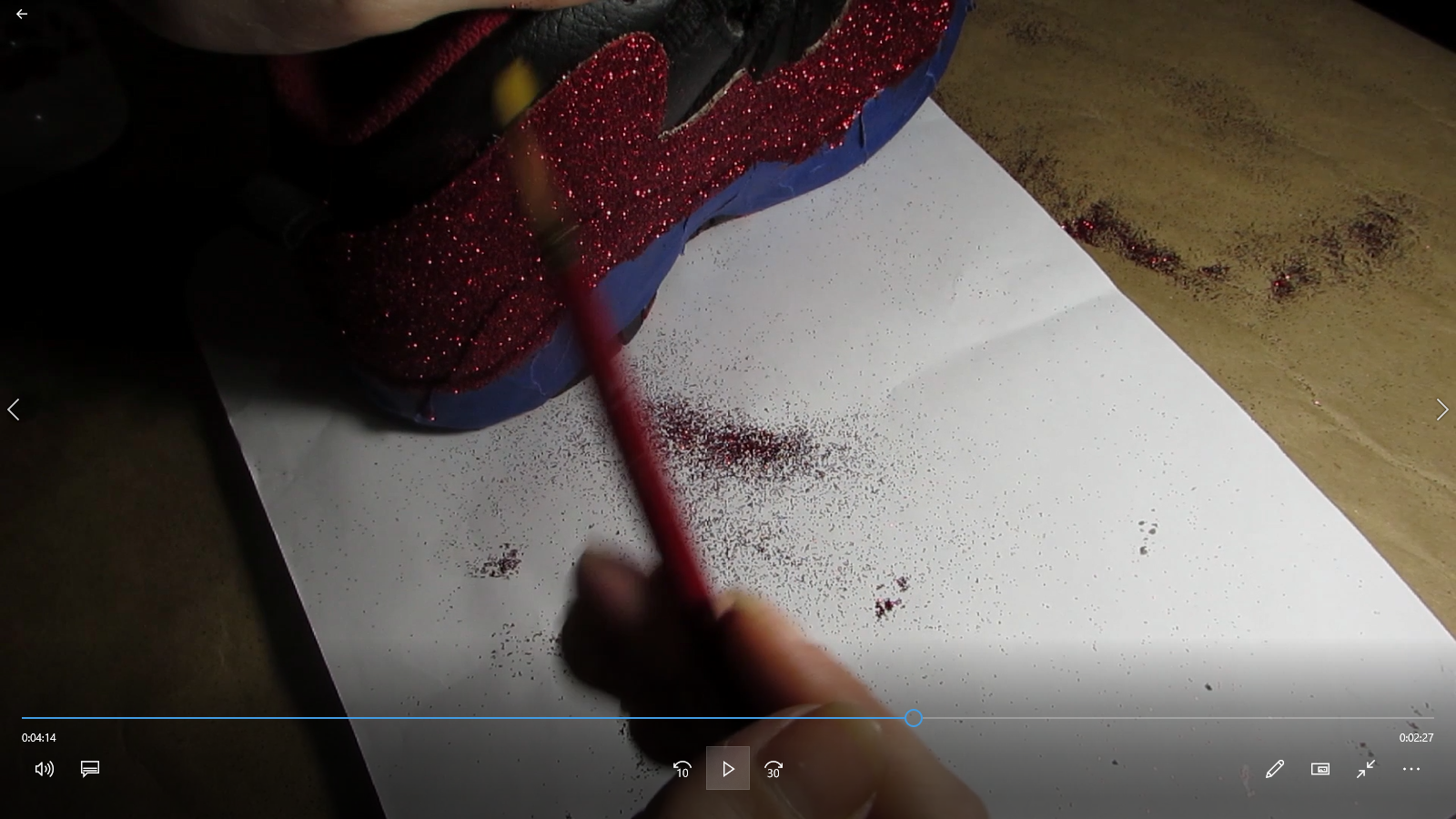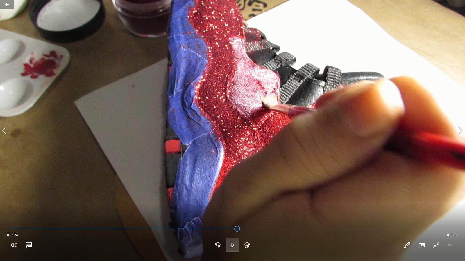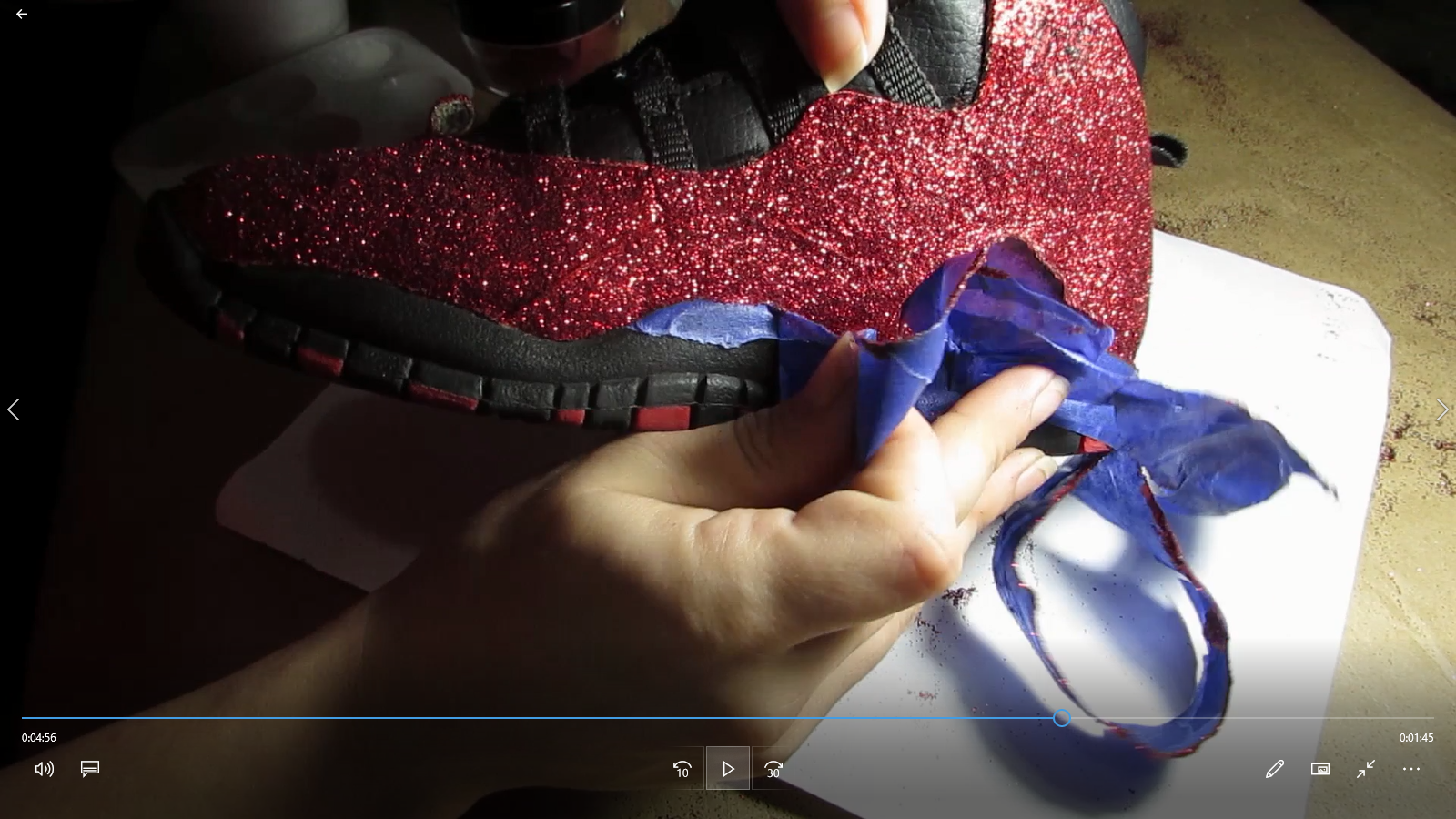 Here is the video of our new employee creating this pair of Red Glitter Jordans.