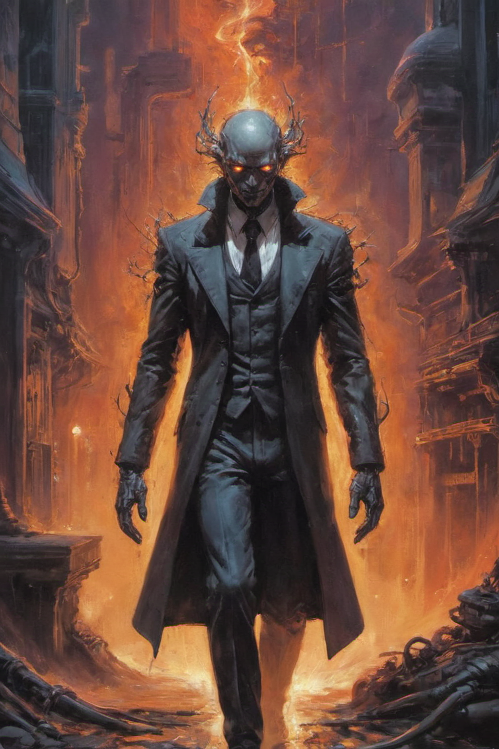 In the world of cyberpunk, where technology and society intertwine in a dance of oppression and rebellion, this enigmatic figure stands as a paradox, clad in tailored suits reminiscent of a bygone era, yet augmented with sleek, futuristic enhancements. His presence is an anachronism, a relic of an age long past, yet somehow perfectly suited to the grimy, neon-drenched streets he traverses.