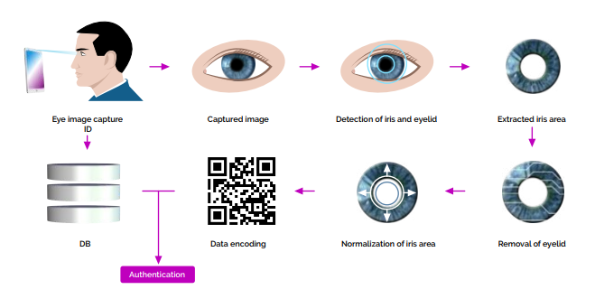 When you look closely into the human iris, you can see a unique arrangement of lines and folds. Even for the same person, this system will be different for each eye. The most important feature of the iris with regard to the methods of verification or payment is its immutability over time. Thanks to this, iris can act as biometric security.