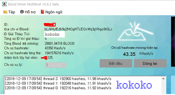 이때 추천인 란에 'kokoko' 을 꼭 기입하셔야 합니다.홈페이지 다운로드 란에서 마이닝 툴을 다운로드 받은후 설치하고,