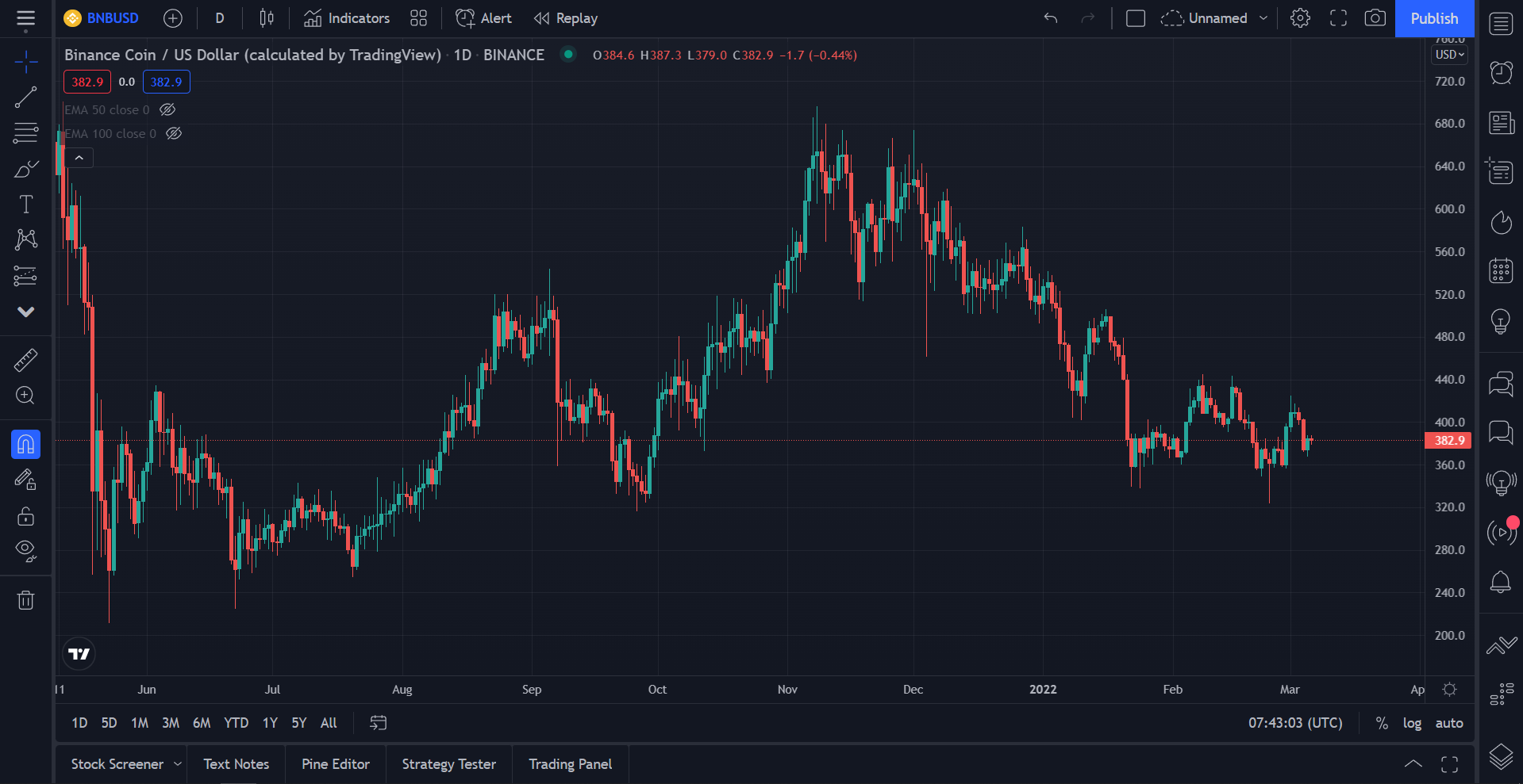 BNB current price on March 6, 2022erev (60)in #bnb • 4 years ago The price of BNB today is at the level of $382.9 #cryptocurrency #currentprice #tradingview