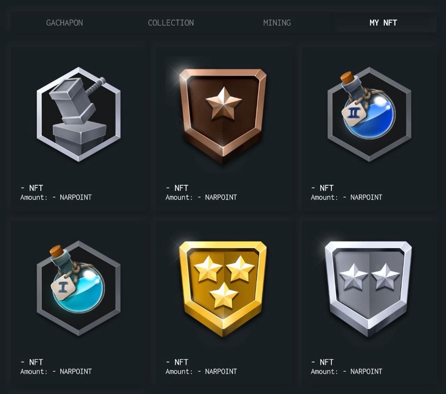 The phase one has the GACHA-MACHINE and THE NAR-RUNES. Each NFTs has different features and usabilites.