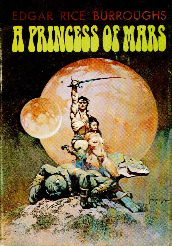 I OPENED my eyes upon a strange and weird landscape. I knew that I was on Mars; not once did I question either my sanity or my wakefulness. I was not asleep, no need for pinching here; my inner consciousness told me as plainly that I was upon Mars as your conscious mind tells you that you are upon Earth. You do not question the fact; neither did I.I found myself lying prone upon a bed of yellowish, mosslike vegetation which stretched around me in all directions for interminable miles. I seemed to be lying in a deep, circular basin, along the outer verge of which I could distinguish the irregularities of low hills.