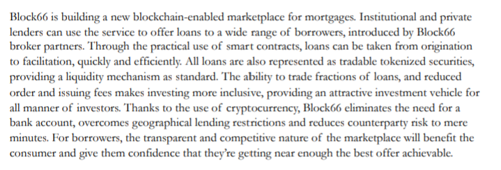 For the mortgage, the @block66 was building a new blockchain-enabled marketplace. Wondering how? It's by the use of the smart contracts! loans can be taken from origination to facilitation easily. @Block66 broker's partners also introduced that the Institutional and private lenders can use the service to offer loans to a wide range of borrowers.