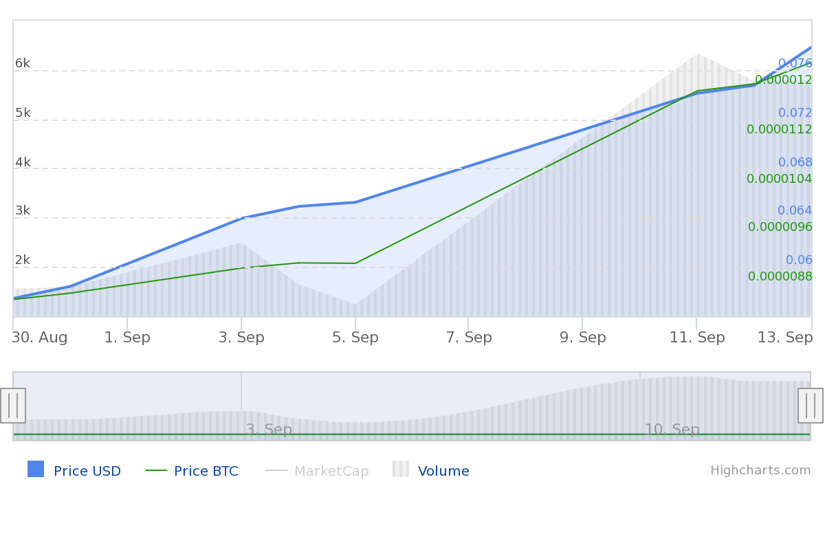 Although it has just started to be traded at August 30th, current market cap of BTB is over 15 million USD on September 13th. The price have shown a steady increase of 50% and reaching 8 cents at the time of this writing. 24 hours volume is over 7300 USD at the moment.