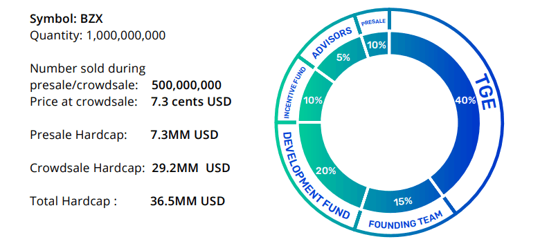 The total amount of token issued is 1,000,000,000 in which only 50% of the total token will be sold out during the token sale period. bZx protocol has a Fundraising goal of $36,500,000 in which each token will be sold at $0.073 each.