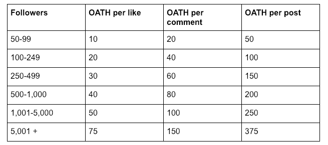 We have allocated 1,000,000 OATH to our Instagram Bounty program.