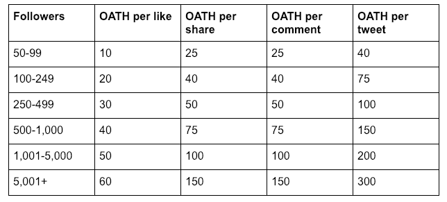 We have allocated 5,000,000 OATH to our Facebook Bounty program.