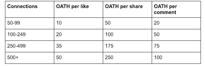 We have allocated 2,000,000 OATH to our LinkedIn Bounty program.