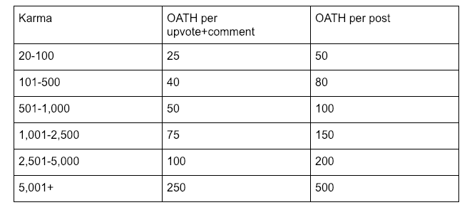We have allocated 4,000,000 OATH to our Reddit Comment Bounty program.