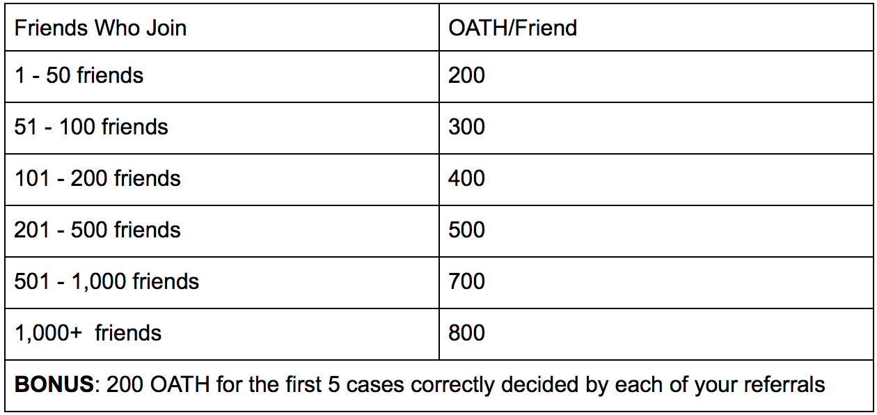 We have allocated 10,000,000 OATH to our Juror Referral Bounty Program.