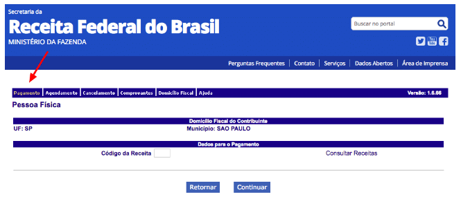 Se você emitir o DARF no site da Receita Federal, é gerado um boleto para que você efetue o pagamento. Basta clicar em Pagamento, preencher os dados (código da Receita, estado, cidade, mês em que o imposto foi devido, CPF) e gerar a guia de pagamento.