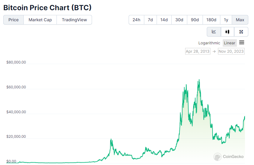 Coins I'm invested inblazinga (58)in #btc • 2 years ago Naturally, Bitcoin first, you'd be a bit silly not to invest anything in the mother of all coins. Looking at the all time chart I'm expecting it to reach 42-46k before a retrace occurs which might then bring us back to previous ATH.