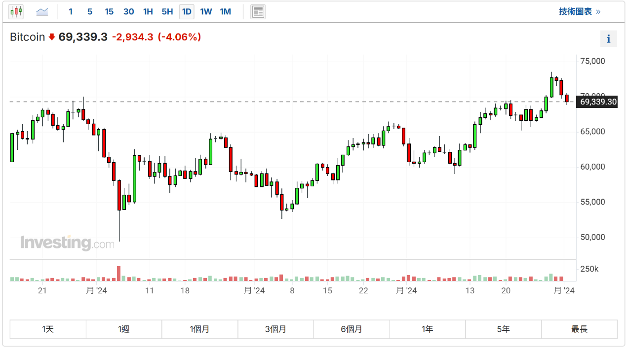 비트코인( 비트파이넥스USD )은 금요일(1일) 사흘 연속 하락하며 4% 이상 하락했고, 미국 거래 전 7만 달러를 잃었습니다.