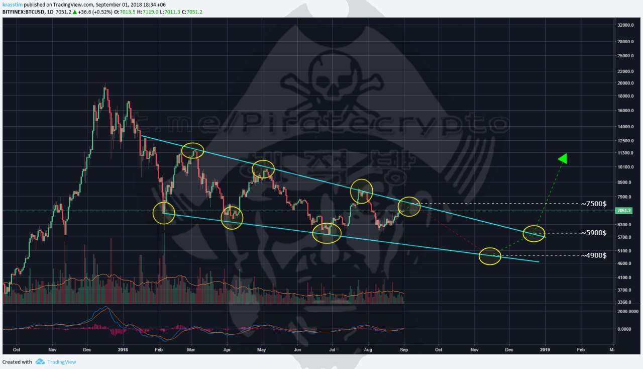 In case if BTC could break through the EMA cluster at 7400$, consolidate higher than 7600$ and could rise to 8000$ then the target will be Kijun line on W1 TF (12000$). But for me this option is unlikely.