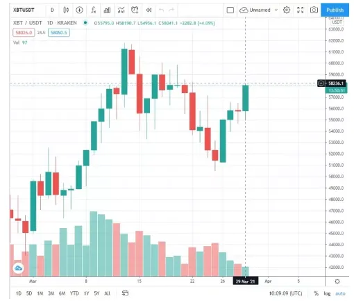 On March 25, Bitcoin fell to the level of $ 50,100 and now the coin has risen to $ 58,092. At the time of writing, BTC is changing hands at $ 57,970. Earlier today, payments giant Visa announced that it would enable its customers to make crypto payments using USDC, the second largest USD-backed stablecoin. In February, Mastercard made a similar statement, announcing that it will allow cryptocurrency payments on its network in late 2021.