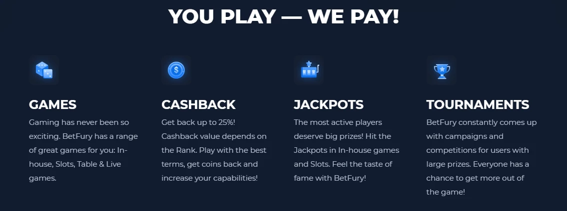Enjoy the best gaming entertainment with the advantages: BTC, TRX, USDT, BTT daily payouts, Rank VIP system, Cashback up to 25%. It's easy to make profit on BetFury — just play and multiply BFG tokens!