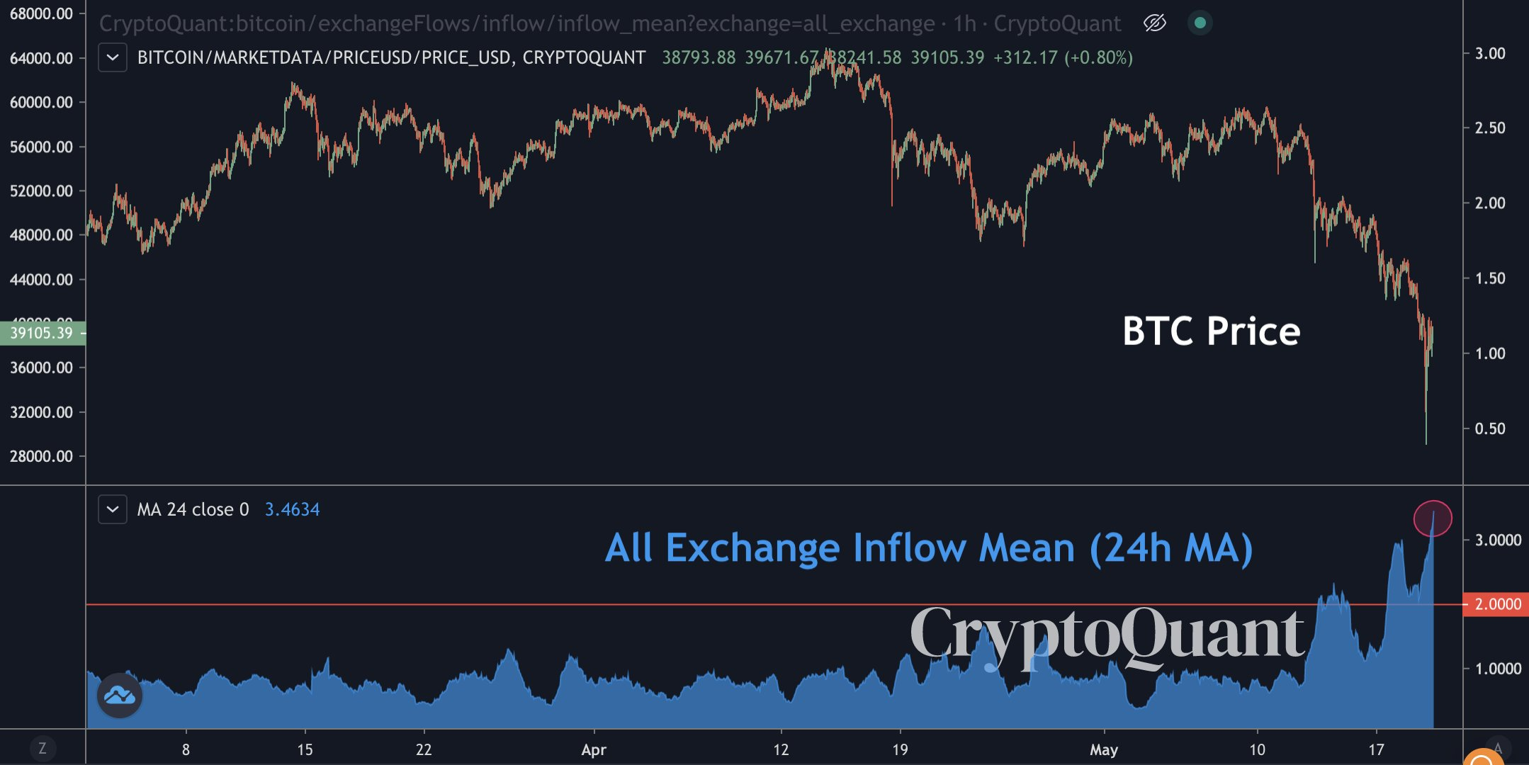 This whale dumping indicator hit a year-high since the March great sell-off last year. Whales keep depositing $BTC into exchanges.