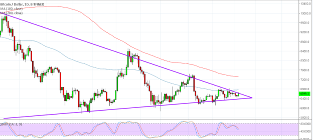 Bitcoin is currently at the terribly finish of its long triangle consolidation pattern, thus a break may happen anytime shortly.