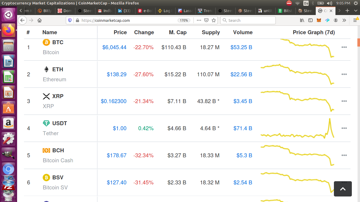 The crypto currencies took a huge hit today (in the 35% minus area).... as you can see here:
