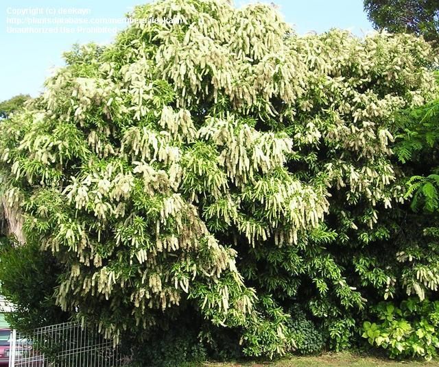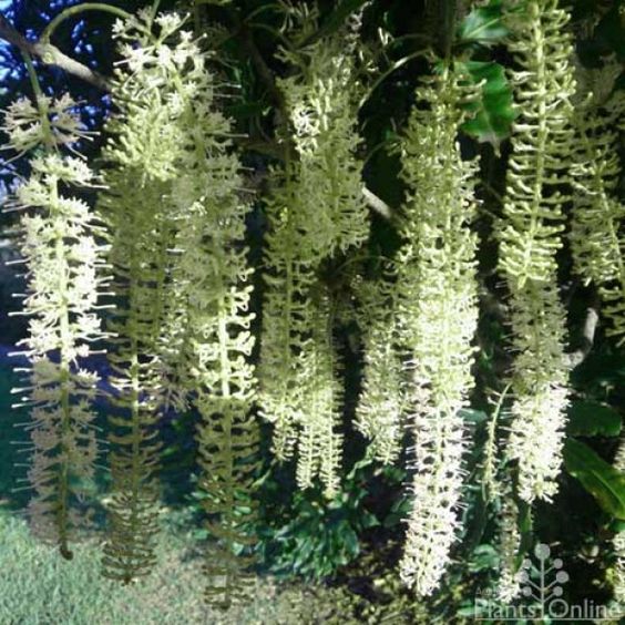 This is a stunning plant in cultivation where it grows into a spectacular flowering medium to large shrub or small tree. In the wild in the rainforests of north Queensland it can grow into a small to medium sized tree but it rarely grows beyond shrub dimensions in cultivation, particularly in cooler climates such as Melbourne. It flowers in autumn, with the long creamy flowerheads often completely hiding the dark green glossy foliage. It makes a wonderful feature plant and should be trimmed back behind the spent flowers.