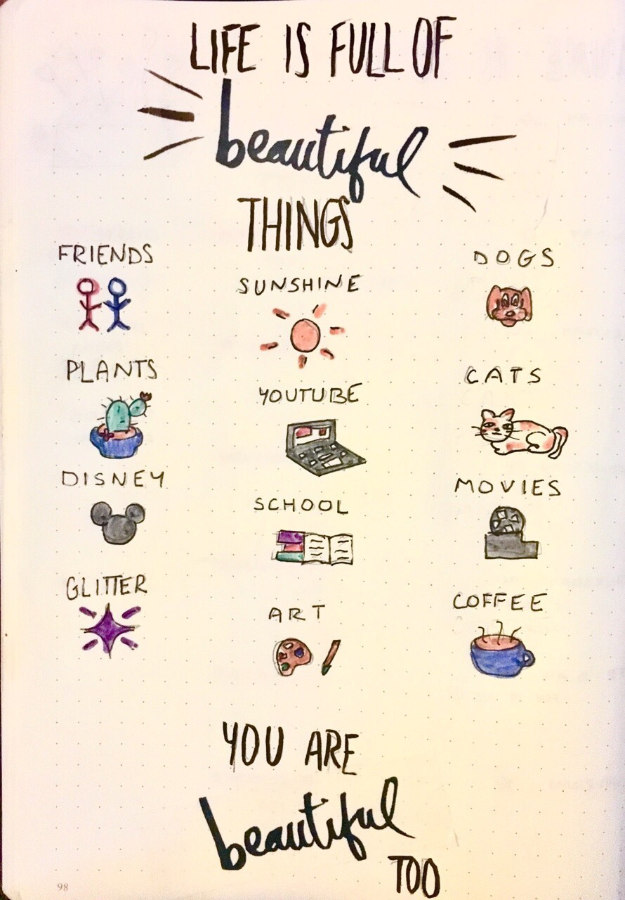 With this spread, you think of a word that is in regards to your life which you think is beautiful. These words could be, activities you love, things you love participating in your life, or something that inspires you.