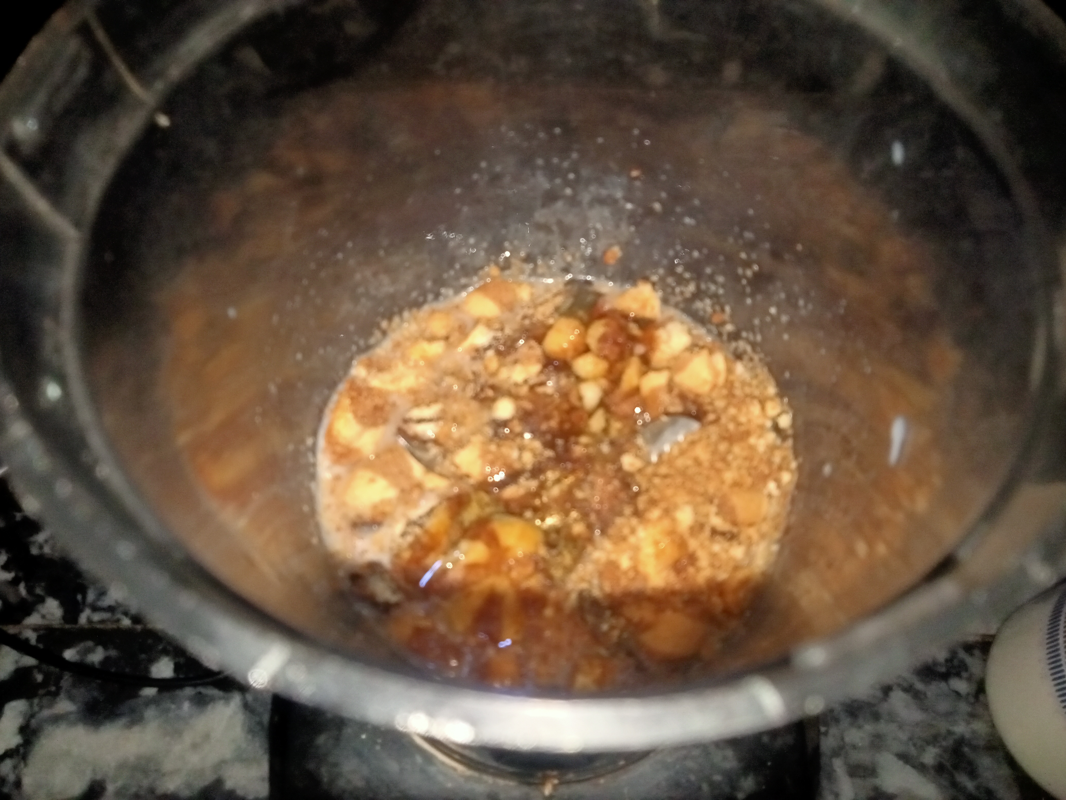 I take a jar or mixer and add melted butter with chocolate chips, brown sugar and biscuit chunks and make a good mixture with it.