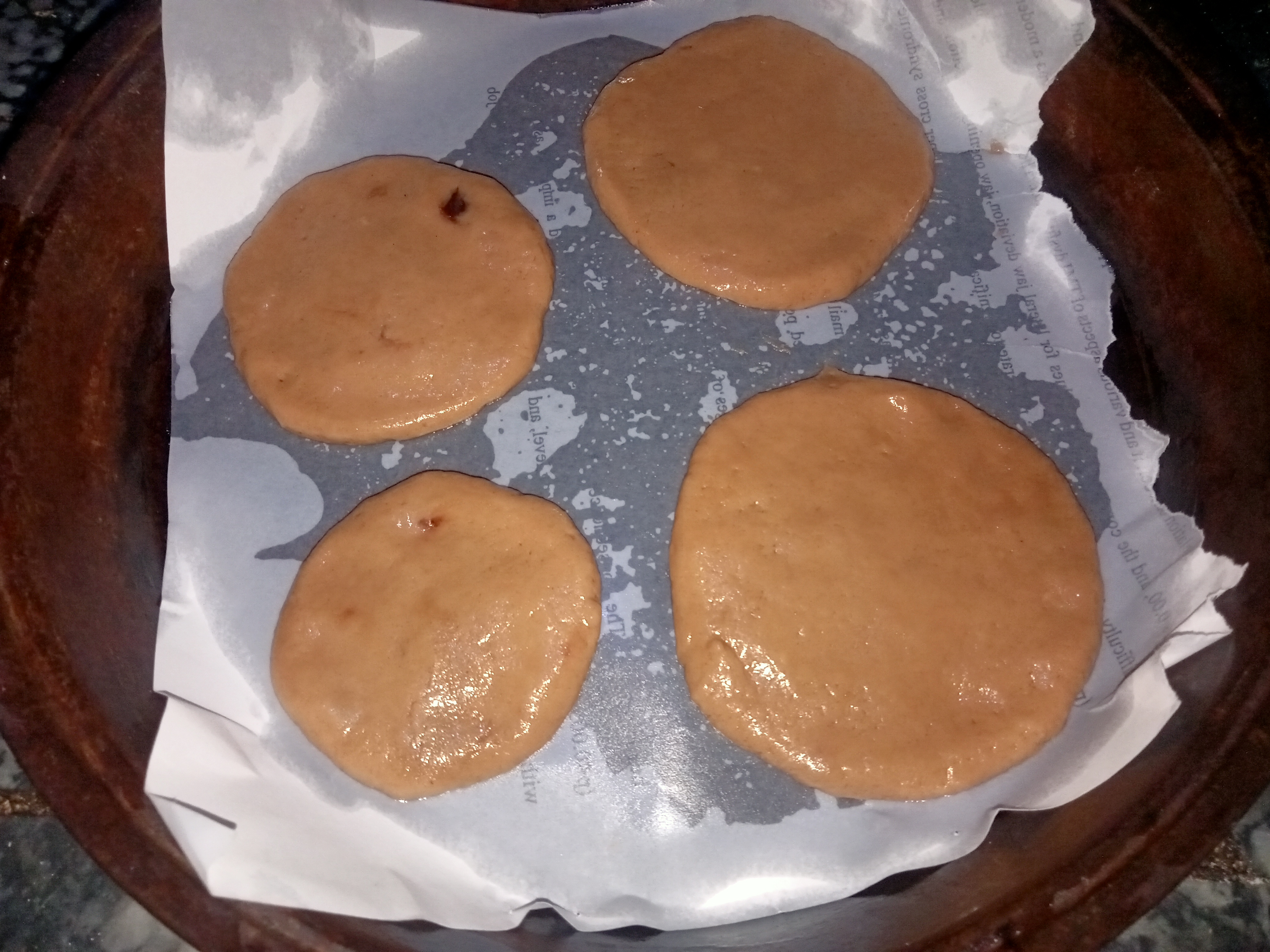 I made small balls of dough and give them shape of cookies and assemble them in pan.
