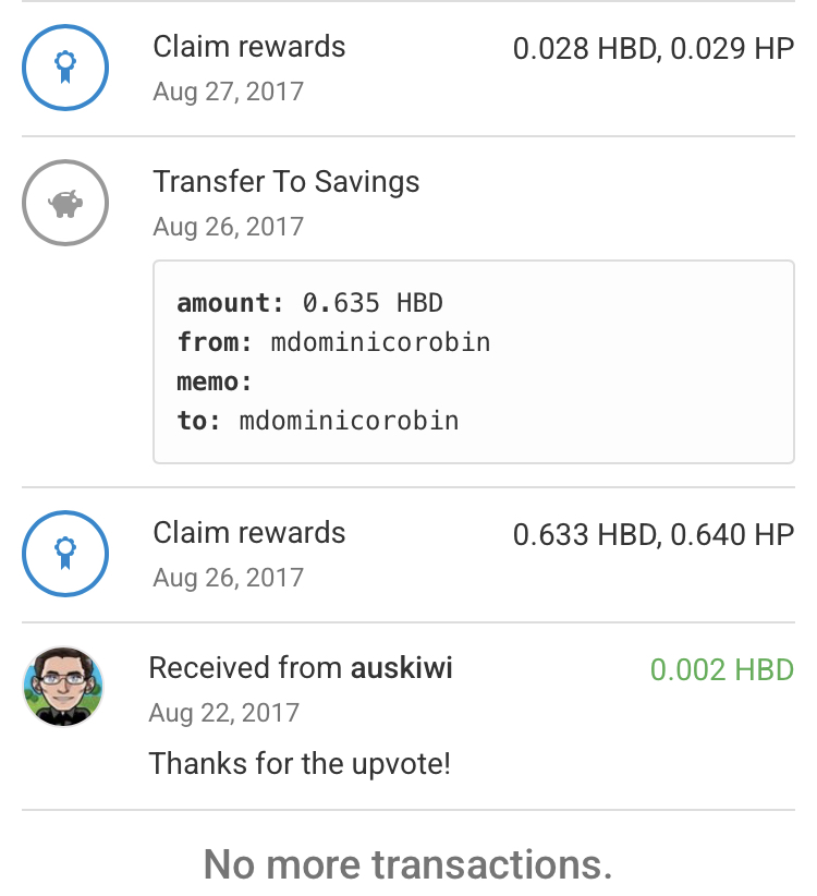 Please refer to the photograph above for certain details and then we shall add my recollection for certain emotions and synapse to be tickled. The account @auskiwi “initiated” the very first transaction ever recorded in my Steemit Wallet. It was the very first lesson that I have learned from a fellow Steemian as I have received 0.02 SBD. From this day on I was able to conclude that I can send a message by attaching a message through a very simple cryptocurrency transfer within the Steemit blockchain network. My conclusion is still applicable today. It was also safe for me to say that Steemians can send messages back and forth since all monetary transactions in the Steemit blockchain network have zero fees. The minimum amount that you can send is 0.001 units which is special as @auskiwi have sent 0.002 SBD. I also have received my very first reward from the rewards pool (Thank you). A portion of my earnings was transferred to savings. I have recorded 4 transactions from August 22, 2017 through August 27, 2017 as seen through the snapshot. The month of August back in 2017 A.D. exposed me to the fact that I did not even know what it is that I am going to write about. The moment that I relied on my creativity and imagination was my Eureka moment. I was able to write a very short piece about placebo effect and it opened infinite number of doors for me. I am glad that the rewards pool noticed my work. They supported me all these years. The rewards pool is an entity in my opinion even back then. Meaning, not about anyone can catch their attention. My first month in the blockchain was indeed fruitful.