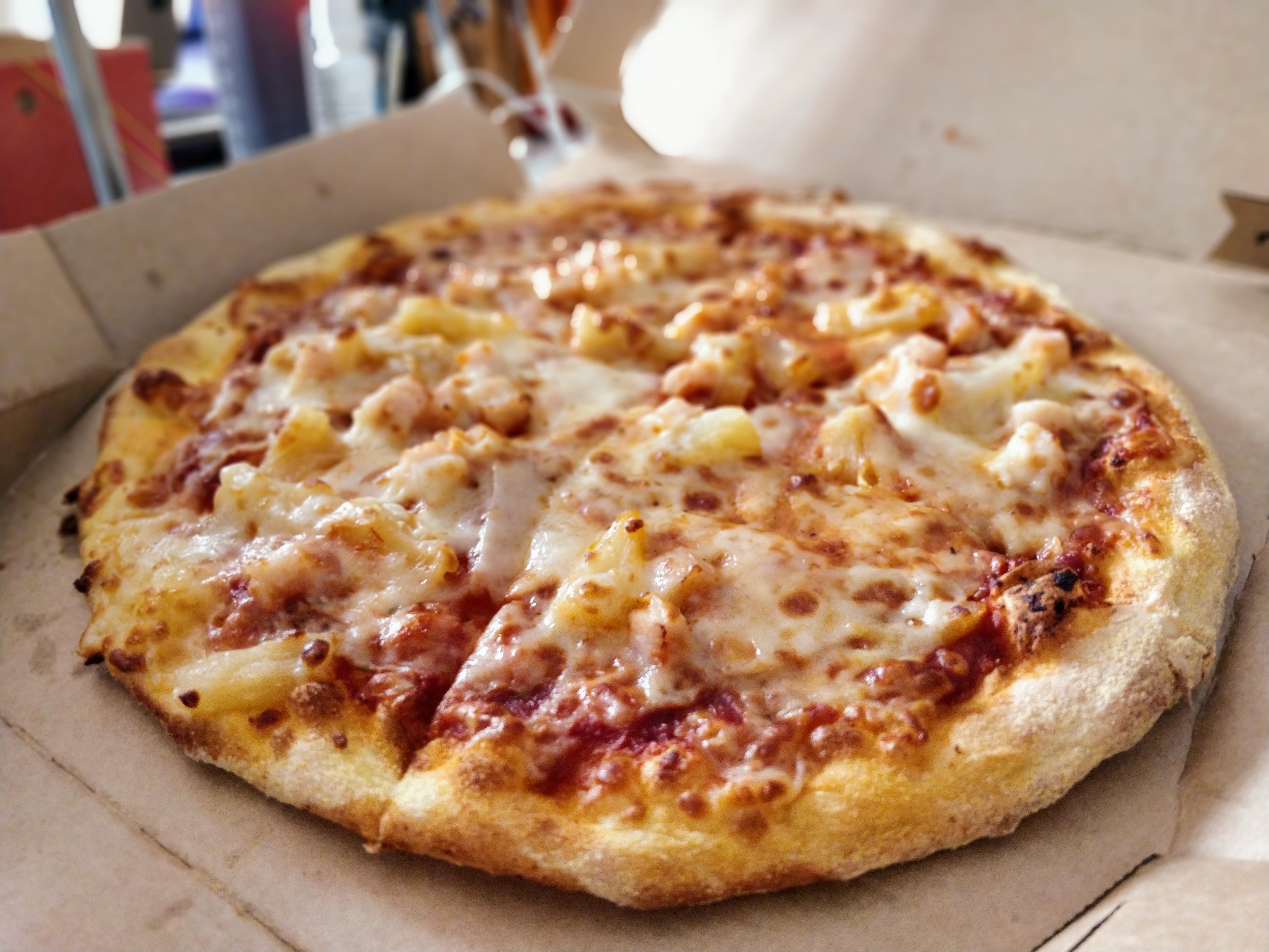 The flavor of Hawaiian Paradise is perfect with smoked chicken breast, Mozzarella cheese, turkey ham and juicy pineapple.