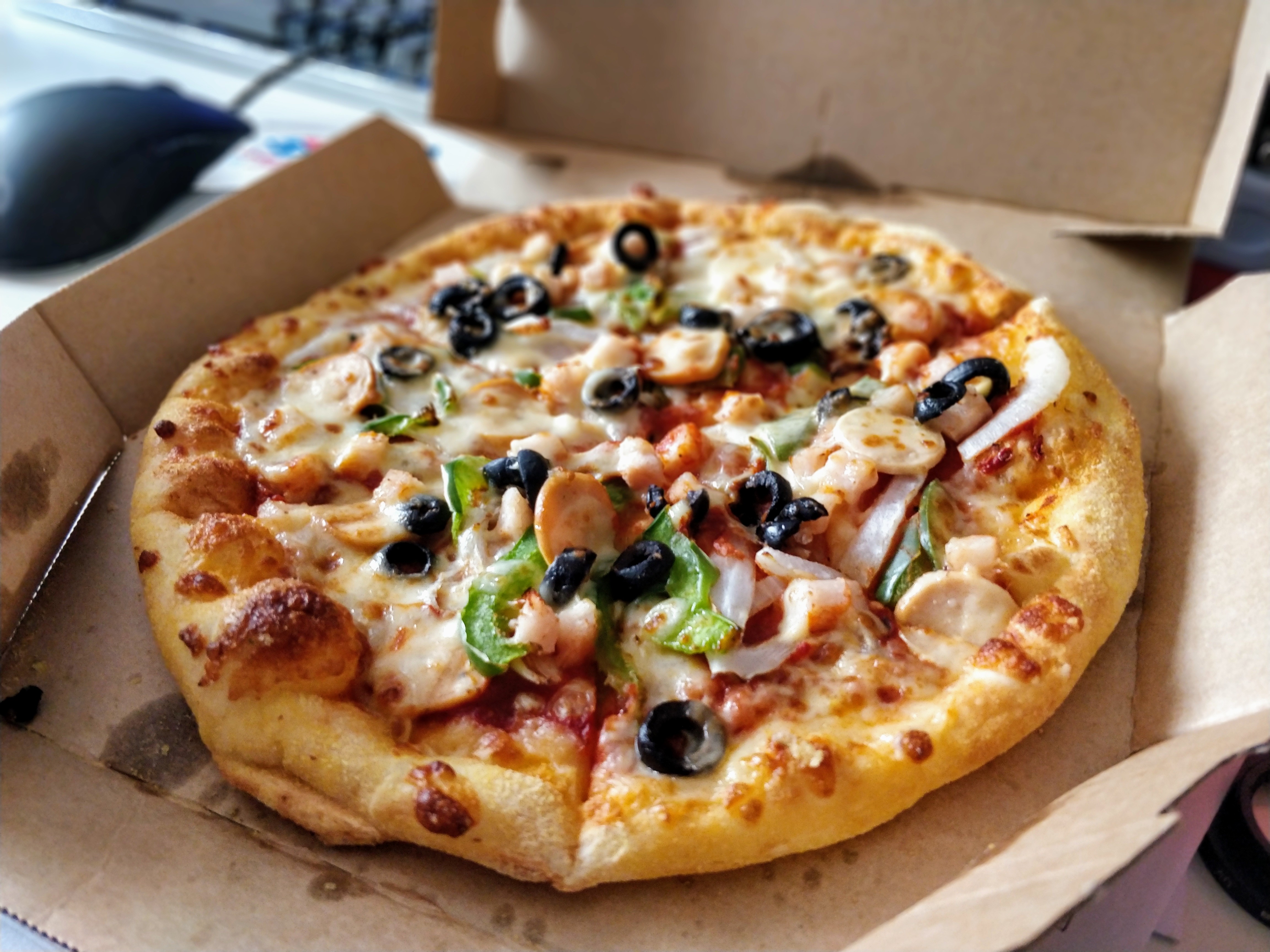 I ordered online at Domino's website. The website interface is clear and user-friendly. After 40 minutes placing order, it arrived.