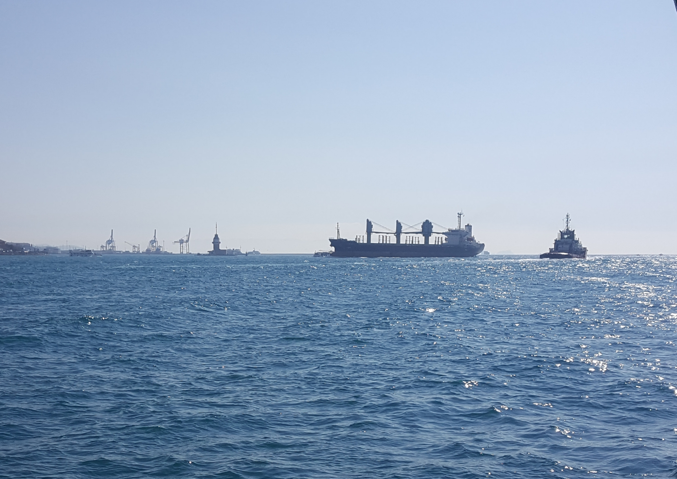 A ship, Maiden's Tower and Haydarpaşa Port...