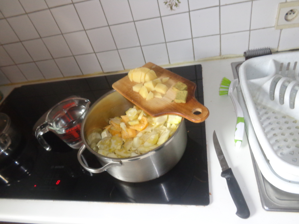 yes well, i asked the houseghost to cut it up for me but it says thats not its job and blender advised me not to just put it into it so i gotta get that too ... homegrown yes, from some friends of my parents ... not haute-cuisine-for-your-girlfriend but a waste to let it waste so it will turn to soup ...