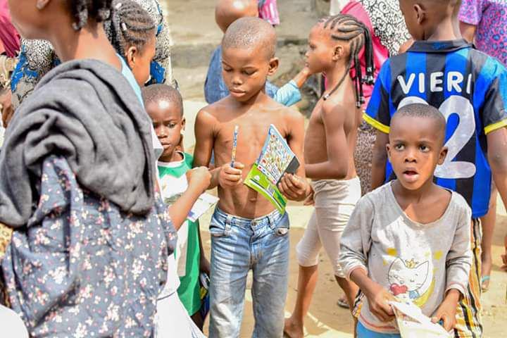 Early December, we had our first outreach, eached out to 100 kids with 100 mini school bags with books, pencils and pen.