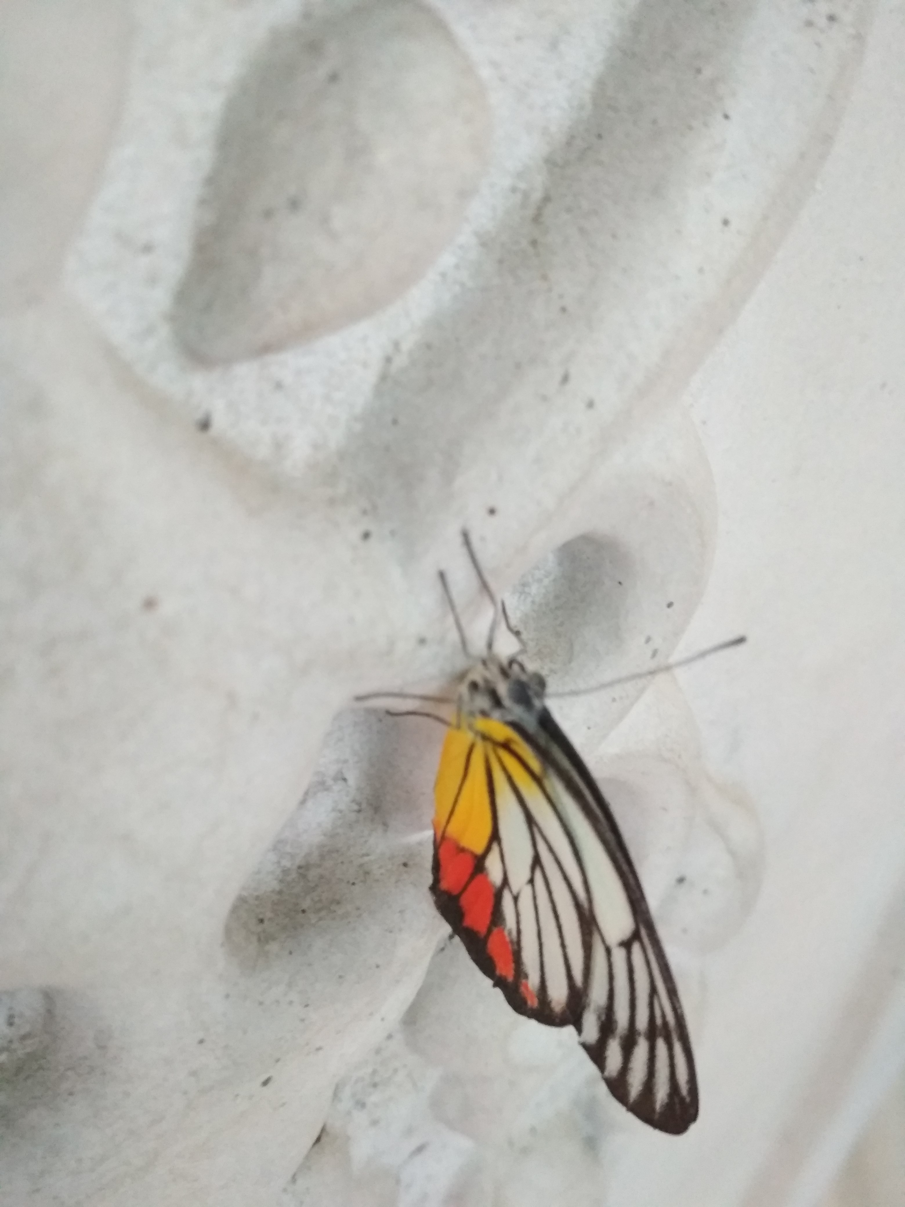Kupu-kupu ini hinggap pada sebuah Ornamen tembok, entah dari mana asalnya. Tetapi karena keindahan dan kecantikan yang ada pada sayap kupu-kupu ini, membuat saya merasa tertarik untuk melihat, mengamati bahkan sampai mengabadikannya.