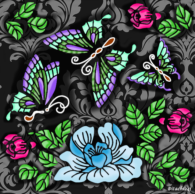 I like the flowers´s background and its contrast with the color of butterflies and flowers pattern!