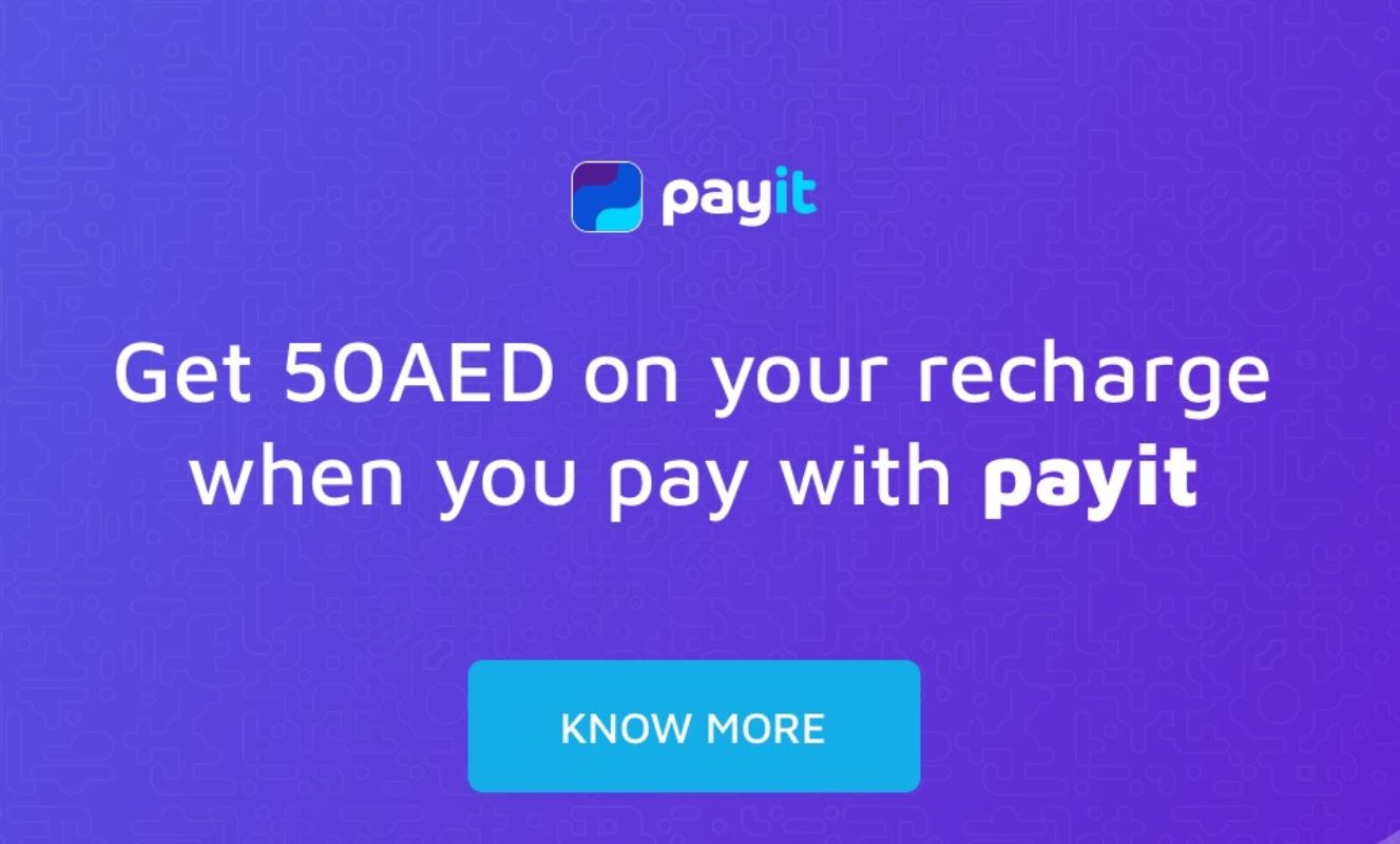 Guys I happen to visit Dubai & I found that mobile packages are expensive until I found this promotion where u need to download this app call '' Payit ''and u get 50AED recharge by Just Paying 1AED.